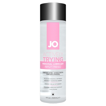 O lubrificante JO Actively Trying cria um ambiente saudável para os espermatozóides com seus níveis de PH otimizados que imitam o equilíbrio alcalino do sêmen e do muco cervical fértil.